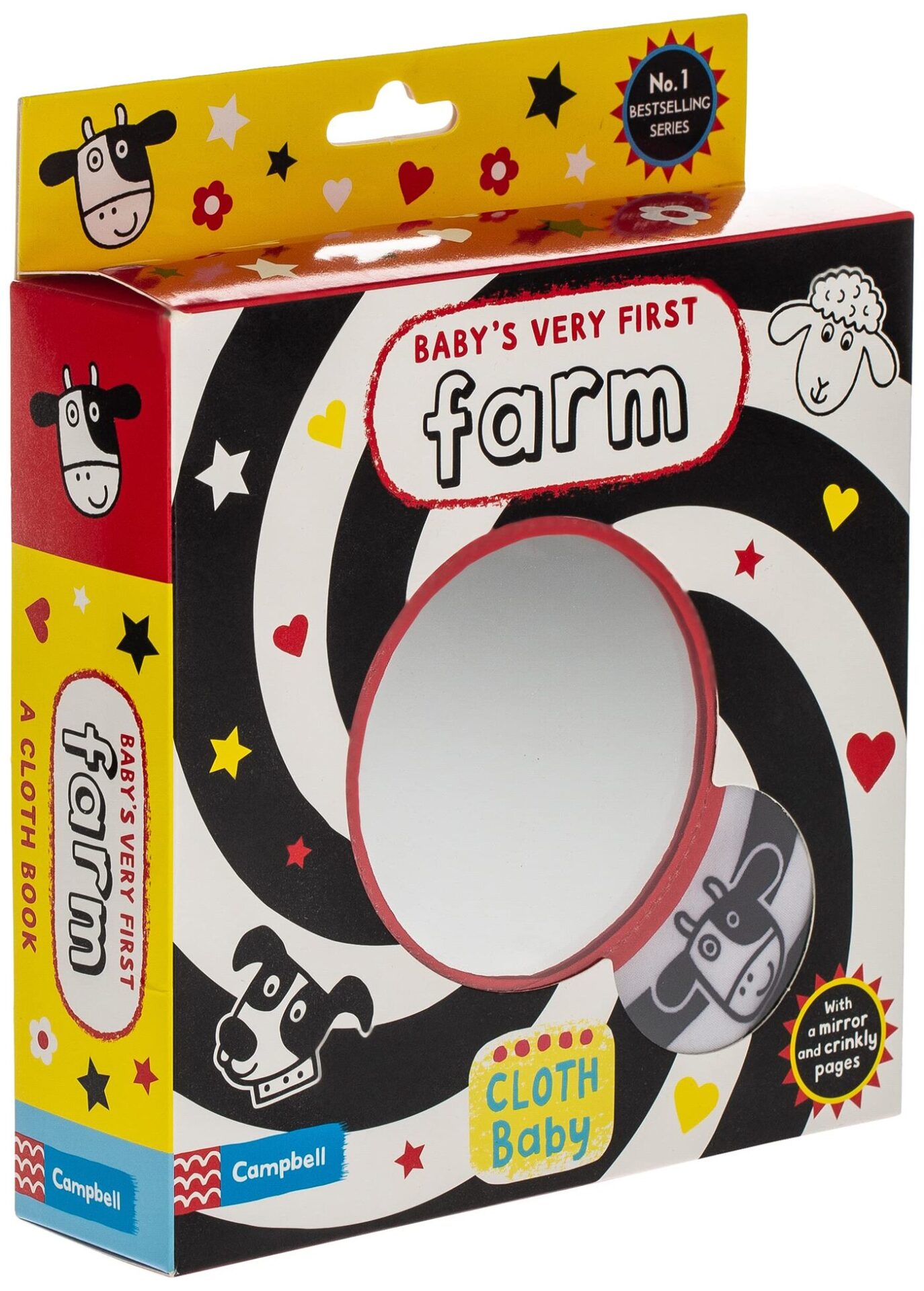 The high-contrast images in Baby's Very First Cloth Book: Farm are designed to help newborns focus. This popular cuddly cloth book also has crinkly pages for tactile fun and a mirror for stimulating the senses. Illustrated by Jo Lodge and packaged in a delightful gift box, this reissue of a bestselling cloth book makes the perfect present for babies 0 months plus.